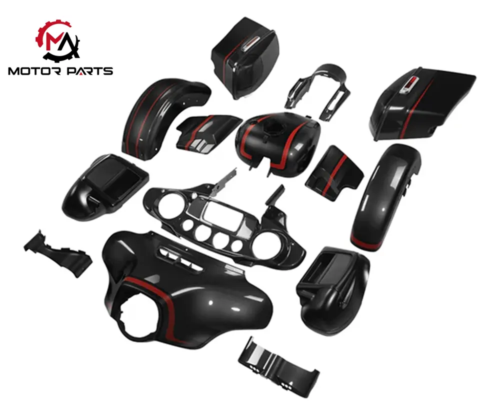மேக்ஸ் டிரேடிங்கின் கவாசாகி KLX250 ஆஃப்-ரோடு மோட்டார்சைக்கிள் பிளாஸ்டிக் பக்க அட்டையில் மாற்றியமைக்கப்பட்ட பாலிப்ரோப்பிலீன் (PP) கலவைப் பொருளைப் பயன்படுத்துகிறது, உயர்-துல்லியமான ஊசி மோல்டிங் செயல்முறையின் மூலம் ஒருங்கிணைக்கப்பட்டது, மேலும் 20% ஷார்ட்-கட் கண்ணாடி இழைகளால் வலுவூட்டப்பட்டது.