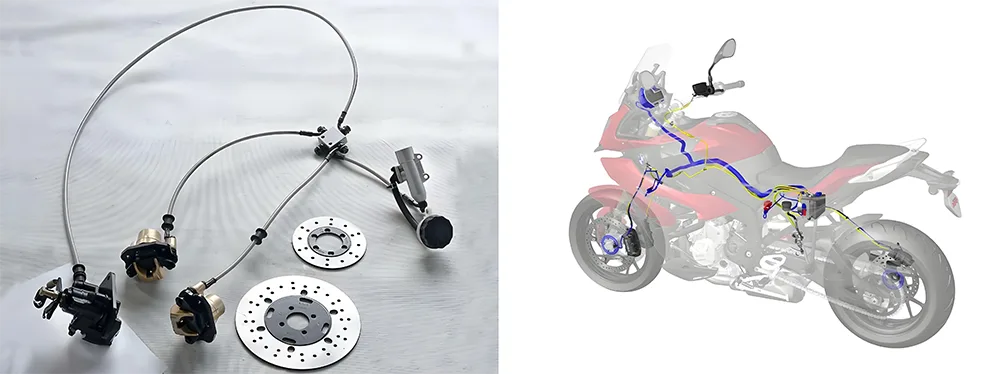 உங்கள் பைக்கை நீங்கள் நேரடியாக நிர்வகிப்பது இதுதான் - நீங்கள் வைத்திருக்கும் அனைத்தும் வழிநடத்தவும் அதை நிறுத்தவும். முன்பக்கத்தில், நீங்கள் ஸ்டீயரிங் தண்டு மற்றும் ஹேண்டில்பார் (அல்லது 'பார்கள்') பெற்றுள்ளீர்கள் - அங்கு நீங்கள் முன் டயரைப் பிடித்து வழிநடத்துகிறீர்கள். கட்டுப்பாட்டு கைப்பிடிகள் உள்ளன: உங்கள் பிரேக் கைப்பிடி (முன்) மற்றும் கிளட்ச் கைப்பிடி (இடது கை), மேலும் பிரேக் மிதி (வலது கால், பொதுவாக பின் டயருக்கு). கேபிள்கள் மற்றும் இணைப்புகள் உங்கள் நகர்வுகளை கடந்து செல்கின்றன, அதே நேரத்தில் உண்மையான நிறுத்தும் திறன் பிரேக் அமைப்பிலிருந்து வருகிறது - காலிபர்கள் பிரேக் ரோட்டர்களில் அழுத்துகின்றன (அல்லது சில பழைய பள்ளி பைக்குகளில் டிரம்ஸ்). மற்றும் ஏபிஎஸ் (ஆன்டி-லாக் பிரேக்கிங் சிஸ்டம்), அந்த முக்கியமான பாதுகாப்பு அம்சம் நீங்கள் வேகமாக மெதுவாகச் செல்லும்போது சக்கரங்களை பூட்டுவதைத் தடுக்கிறது. நீங்கள் அதைப் பிடித்தால், அதில் அடியெடுத்து வைத்தால், அல்லது பைக்கைக் கட்டுப்படுத்த அதன் மீது சாய்ந்து கொண்டால், அது இந்த அமைப்பின் ஒரு பகுதியாகும்.